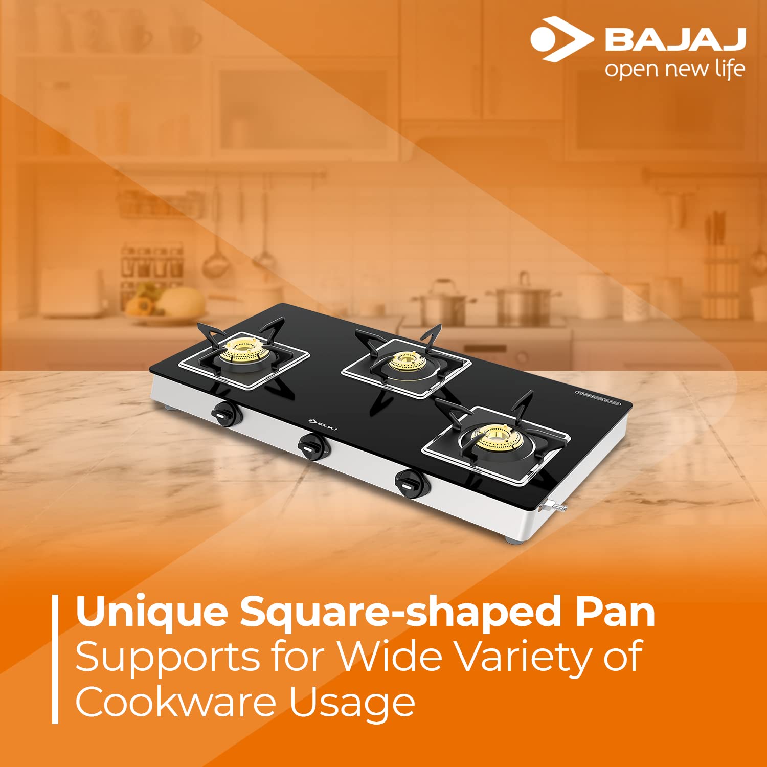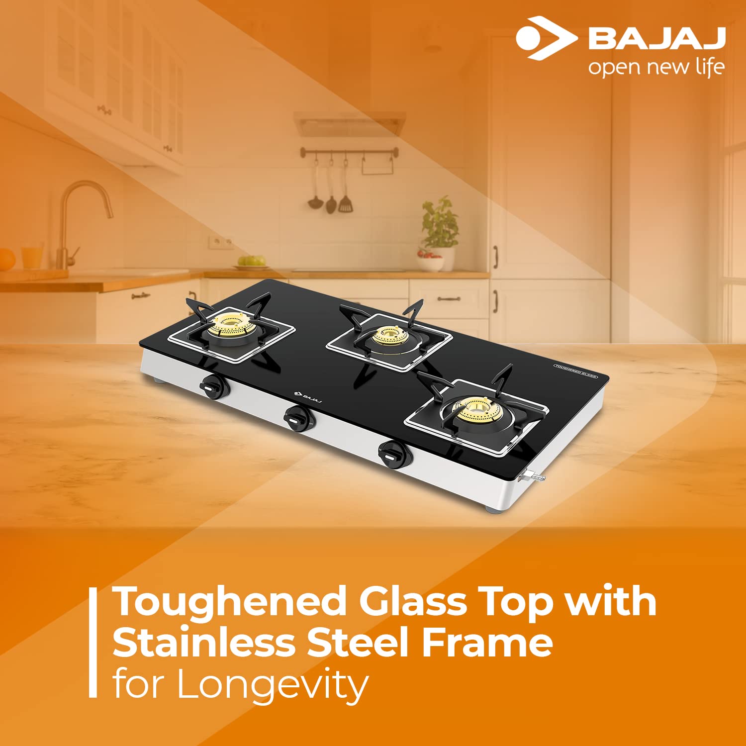 Bajaj Gas Stove Stainless Steel Glass Top 3 Burner 3BJGS7